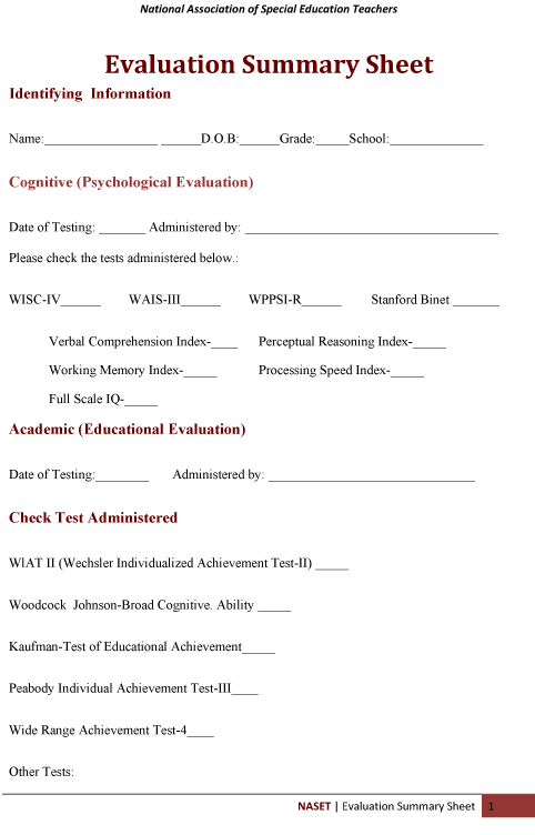 - Additional evaluations or assessments that are necessary to identify the student’s educational needs.