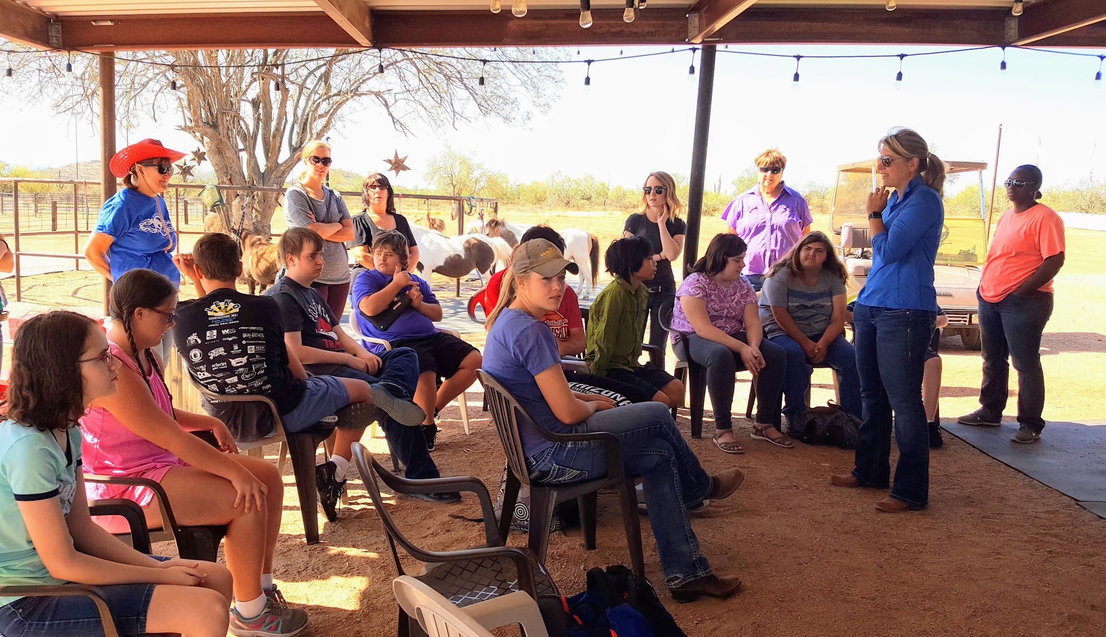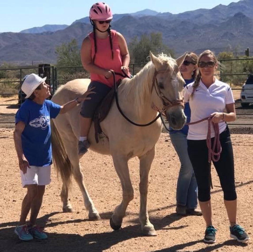 The twenty-minute bus ride from Fountain Hills High School to Reigning Grace Ranch in Rio Verde, Arizona runs parallel along an untouched patch of the Tonto National Forest and the Fort McDowell Yavapai Reservation. It is a quiet ride through the quintessential desert landscape buzzing past saguaro cacti that have been around longer than the state of Arizona. As we arrive at the 15-acre sanctuary, the cool crisp aroma of fresh air mixed with typical farm fragrances of dirt, hay, and manure fill students’ lungs as they get off the bus. The friendly hellos of community mentor and horses neighing echo throughout the ranch while chimes clank and birds sing. The sight of 40 plus horses, both miniature and full-sized, roaming carefree across the sanctuary bring smiles of joy and excitement to the students’ face. Just west of the corrals a pergola extends from the tack room, creating a classroom without walls. Here shade, chairs, tables, and supplies are located for students to begin their weekly lesson.