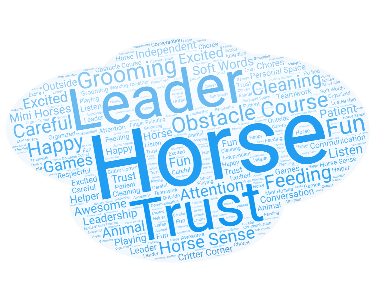 Reigning Grace Ranch was started by Amanda and Christopher Moore in 2009, and the Marvelous Minis program, created by John and Debbie Anderson in 2004 was adopted shortly after (Moore and Moore, 2016). As the program is used at a variety of different educational levels aimed towards at-risk or special needs students, it includes modifications to each lesson depending on the needs of individual participants. Over a nine week period, students engaged once a week for 90 minutes in activities such as: grooming horses, helping with farm chores, completing schedule and time management activities, developing and constructing obstacle courses, leading horses through obstacle courses, instructing younger peers through obstacle courses with their miniature horse, playing different games with minis, painting inspirational and positive self-image words on horses, and ending on a high note of riding full-size horses. Each student was paired with an adult mentor that assisted them through lessons and activities at the ranch. Mentors changed occasionally but most of the students had the same mentor throughout the course. My role was to assist mentors with students’ behavior, conflict resolution between students, and help to assist students overcome their fears and frustration of completing new and/or difficult tasks. I also served as a fill-in mentor if there were not enough mentors available for specific activities.
